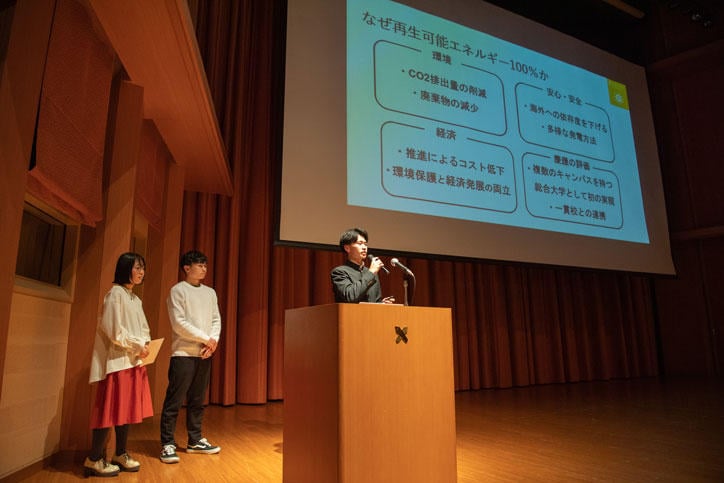 Student delegates delivered their proposals to President Kohei Itoh in front of a group of university officials. Among them were the 2022 Student Conference supervisors, Professor Norichika Kanie and Project Professor Hiroko Kuniya who both work with the Graduate School of Media and Governance, and other faculty and staff members.