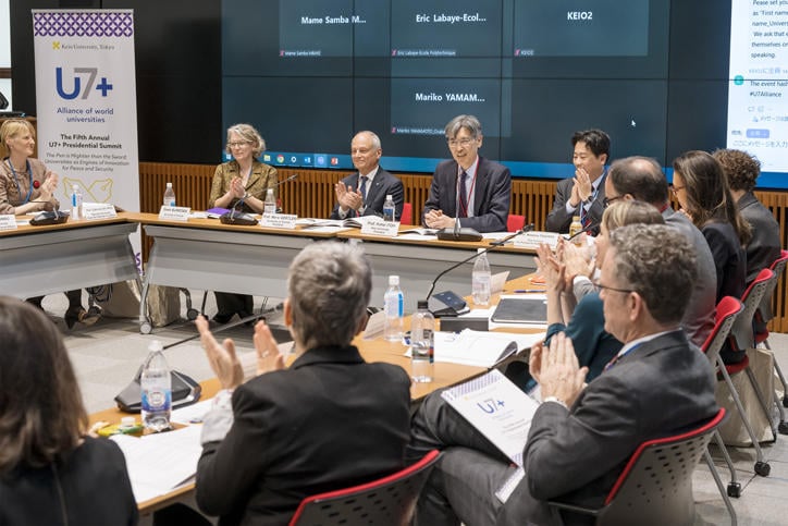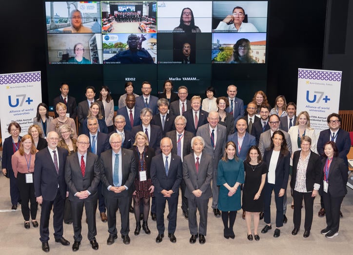 On March 16-17, Keio University hosted the fifth annual U7+ Alliance of World Universities Presidential Summit. More than 75 Presidents and Vice-Presidents from universities in 16 countries, including some participating online, joined the summit to focus on the common challenges faced by today's global society. The discussions were centered around the theme of peace and security, and the summit was an opportunity to work on establishing a framework for concrete actions to be taken by universities.