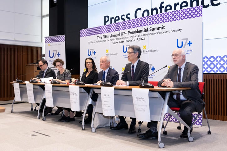 To call on G7 leaders to invest in education on peace and security, U7+ compiled the voices of member universities in the "Tokyo Statement: Universities as Engines for Innovation for Peace and Security" and handed it to Japanese Prime Minister Fumio Kishida, Chair of the G7 Hiroshima Summit. Specifically, the statement calls for investing in education that fosters cross-cultural and cross-border understanding to enhance student mobility on a global scale by reducing visa and financial barriers, incorporating the latest peace and security research into policy, diversifying stakeholders in peace and security policy discussions to include women, youth and cultural minorities and voices from the Global South, and defending academic freedom and free speech in educational and research institutions.