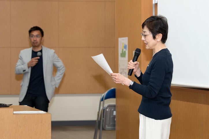 The second session, an introductory one, was held on Wednesday, May 24, and was attended by about 80 participants. The session began with advice from the four leaders of the previous year's sub-working groups on the preparation of the recommendations, followed by a lecture by Professor Norichika Kanie of the Graduate School of Media and Governance, and a dialogue with Professor Kanie and Guest Professor Hiroko Kuniya of the Graduate School of Media and Governance. In the dialogue, each of them talked about the significance of the SDGs, and expressed their wish for the students to "take bold action and make bold mistakes" and "lead the world with innovative ideas."