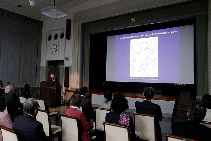 Lectures by both recipients followed an address by Professor Takanori Kanai, Dean of the School of Medicine, at the subsequent commemorative lecture session. In his address, Professor Kanai said that the award ceremony and lectures were deliberately held on Shinanomachi Campus where the School of Medicine is located in order to motivate early career researchers, including medical students, in line with the will of the award's donor, Dr. Sakaguchi, and that he hopes the event will be an opportunity to gain insight into their own research. An audience of about 200 people, which included guests, faculty and staff members, and students at the venue as well as those participating via the livestream, listened attentively to the lecture. The lecture was followed by a lively Q&A session with participants, including students. After Professor Mori's lecture, Professor Ferrara posed several questions, resulting in a stimulating discussion among the award recipients.