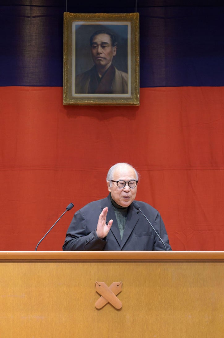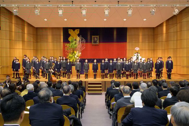 Following the lecture, Hiroyuki Fukuzawa greeted the audience on behalf of the Fukuzawa family. An awards ceremony for the Keio University-sponsored national high school student essay contest established in honor of Shinzo Koizumi, a former president of the university, followed. It concluded with the singing of the "Juku-ka," Keio University's alma mater.