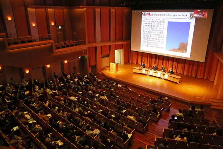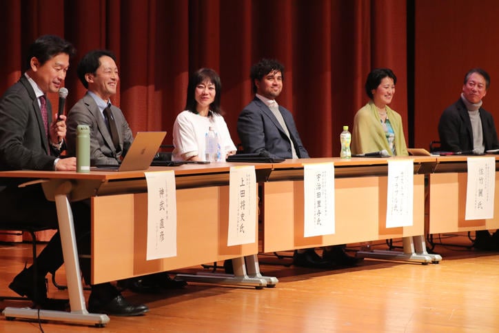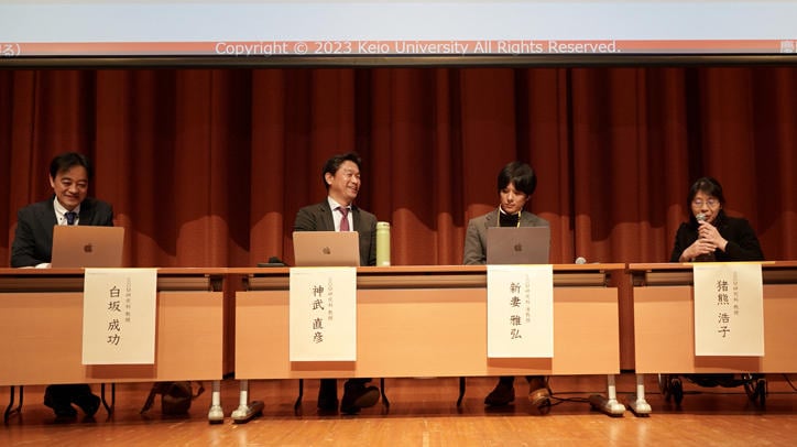The event was held in the Fujiwara Hiroshi Hall on Hiyoshi Campus and began with opening remarks by the dean of SDM, Professor Seiko Shirasaka. This was followed by three panel discussions.