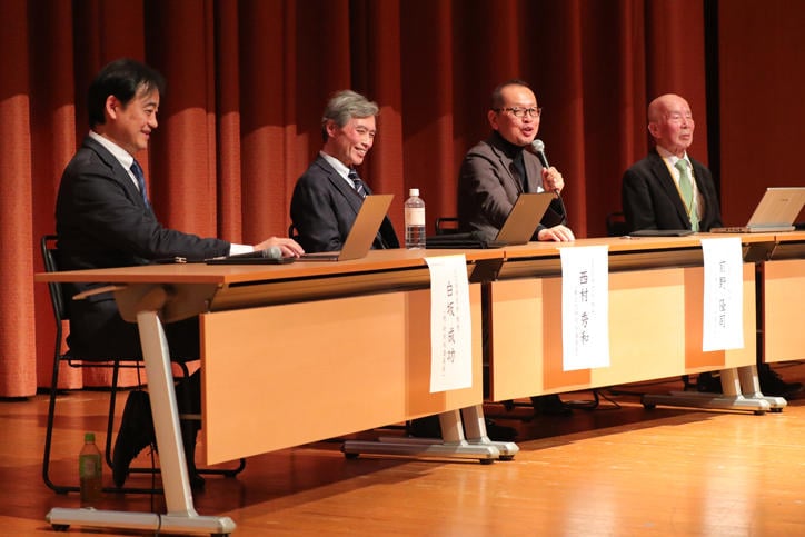 The first panel was conducted under the theme of "SDM’s Past and Future." Injecting humor into their talk, the four past and present deans of SDM discussed how the graduate school was established as part of Keio University's 150th anniversary project, the difficulties involved in its founding, notable episodes during their respective time as dean, and their current research.