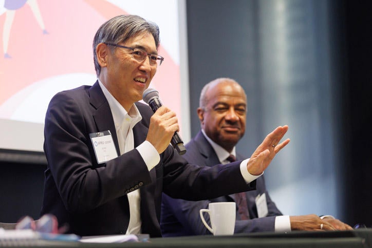 In addition, on June 23, prior to the Presidents' Meeting, President Itoh and Vice-President Okuda participated in theAPWiL (Asia Pacific Women in Leadership) In-Person Summit. More than sixty university representatives attended the summit, including those from member universities who had previously participated as mentors and mentees during the APWiL Mentoring Program (one faculty member from Keio also attended). At the summit, President Itoh was a panelist during the session titled “The Role of University Leadership in Advancing Gender Equity,” where he shared Keio's experiences, strategies, and successes in promoting gender equity, and discussed the role other senior leaders can play in advancing these efforts. Also, Vice-President Okuda served as moderator and speaker in the event's keynote discussion titled “A Conversation on Driving Change Towards Gender Equality,” which explored various topics and allowed expert panelists to share valuable knowledge and insight about driving progress and meaningful change towards diversity, equity, and inclusion.