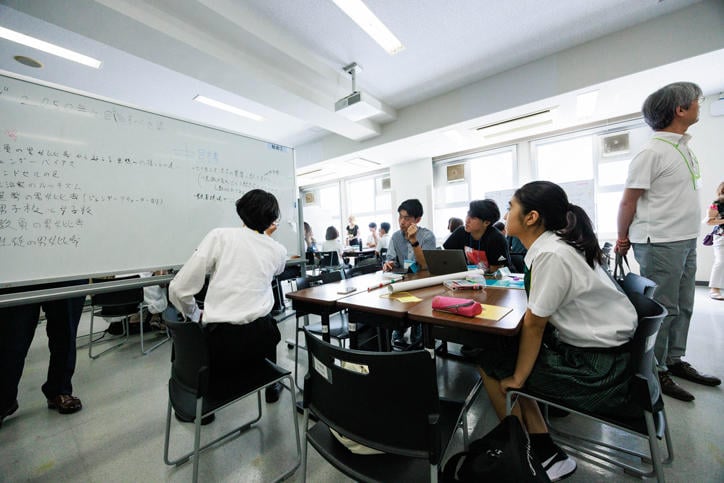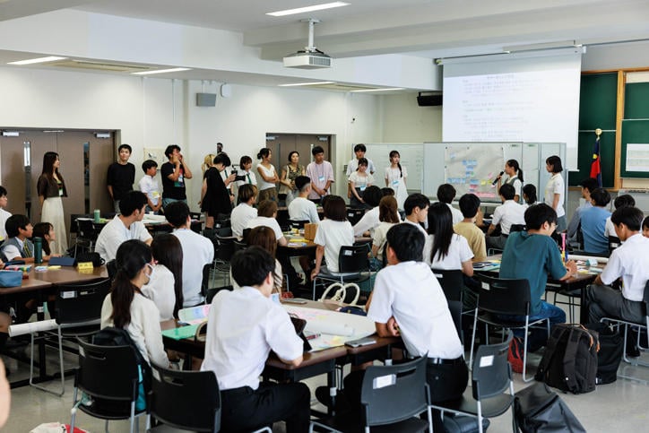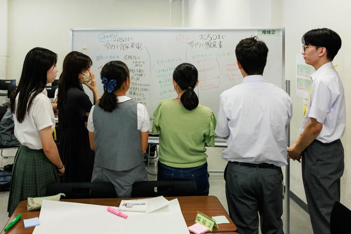 While the participants were engaged in heated discussions, teachers from each of the affiliated schools also gathered in a separate classroom. Moderated by Professor Hiromitsu Kobayashi of the Faculty of Law, who serves as the head of the Keio University Student Conference project, they exchanged various opinions on SDGs initiatives and discussed future collaborations. This collaborative initiative, spanning from elementary school to university, is a pioneering example that is rare even on a global scale.