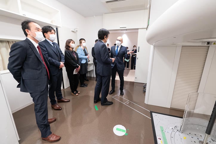A facilities tour of the Keio University Hospital was also conducted prior to the award ceremony. Sir Hassabis and Dr. Saitou listened with interest as hospital staff explained the various facilities and services of the AI Hospital which leverages AI technology.