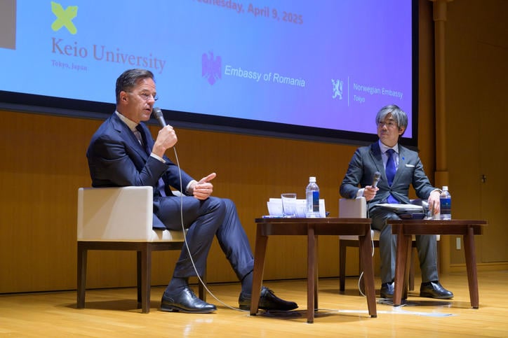 On April 9, Keio University invited North Atlantic Treaty Organization (NATO) Secretary General Mark Rutte for a speech titled “NATO and Japan – Strong Partnerships in an Interconnected World” held at Mita Campus. Attendees included officials from the NATO headquarters, the Norwegian Embassy in Tokyo, and the Embassy of Romania in Tokyo, as well as ambassadors and embassy officials from various countries in Europe and elsewhere. Keio University was represented by Vice-President Motohiro Tsuchiya, as well as many Keio students, faculty, and staff who also participated in the event.