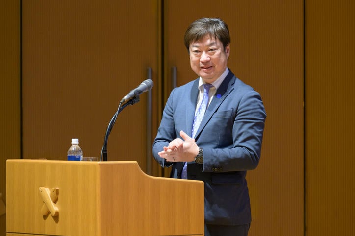 Vice-President Tsuchiya delivered an opening address and gave a warm welcome to Secretary General Rutte on behalf of the university. This visit marks 10 years since his last visit to Keio University as the prime minister of the Netherlands. Vice-President Tsuchiya further mentioned in his speech the deep historical ties between Keio University and the Netherlands, which originated from the school for Dutch studies established by Keio’s founder, Yukichi Fukuzawa. He also alluded to the changes in global affairs over the past decade and security challenges in East Asia, before passing the baton to Secretary General Rutte for his speech.