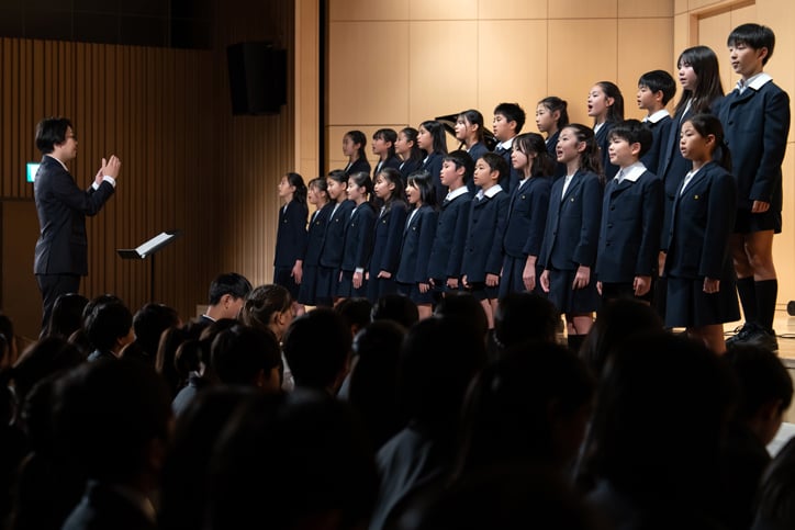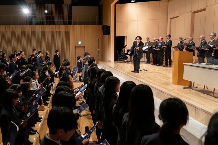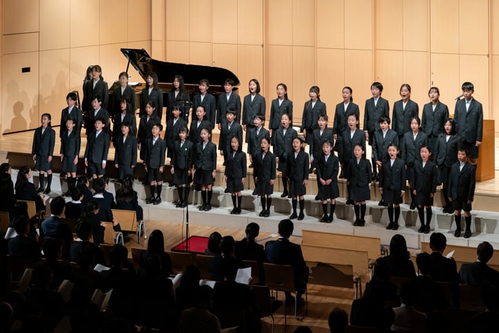 During the concert, students from the Yochisha Elementary School and Keio Yokohama Elementary School participated, their energetic voices filling the hall. The event concluded with the entire venue joining together for a grand chorus of the Juku-ka.