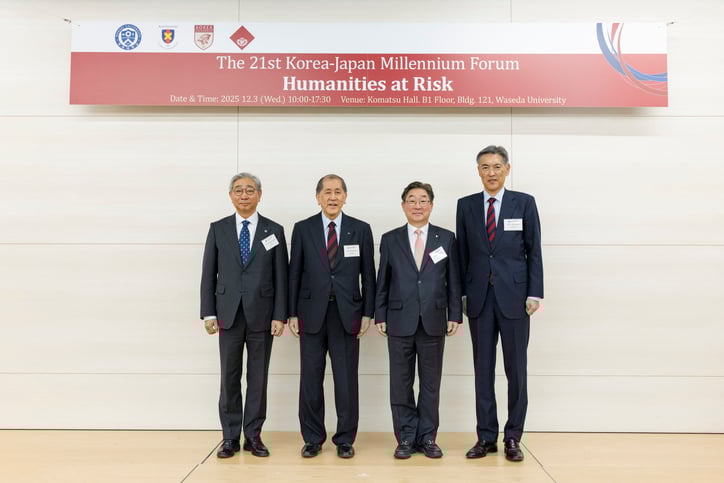 The 21st Korea-Japan Millennium Forum was held at Waseda University from December 2 to 3, 2025. Participating in the event from Keio University were President Kohei Itoh, Vice-President Motohiro Tsuchiya, along with Professor Satoko Tokunaga from the Faculty of Letters and Professor Akira Ishii from the Faculty of Economics as presenters, and a student representative.