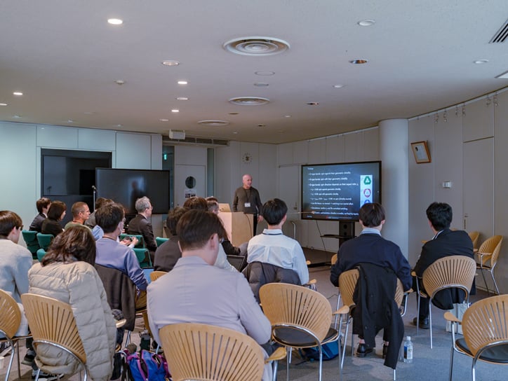 From OIST, Professor Eliot Fried of the Mechanics and Materials Unit, Assistant Professor Dan Daniel of the Droplet and Soft Matter Unit, and Associate Professor Amin Chabchoub of the Marine Physics and Engineering Unit delivered lectures on innovative research topics. Each presentation was followed by lively question-and-answer sessions, with active and in-depth exchanges of ideas on advanced research themes.