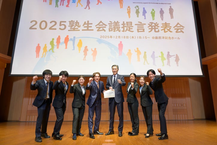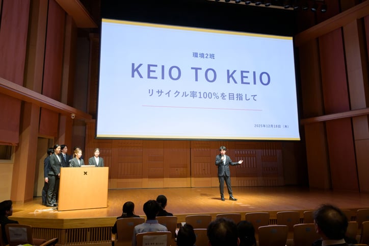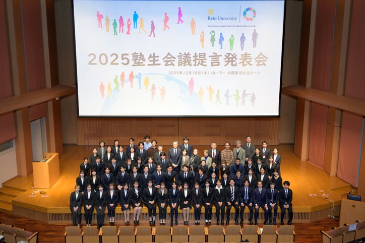 On Thursday, December 18, an event was held on Hiyoshi Campus for participants of the 2025 Keio University Student Conference to deliver their final proposals to the president of the University.
