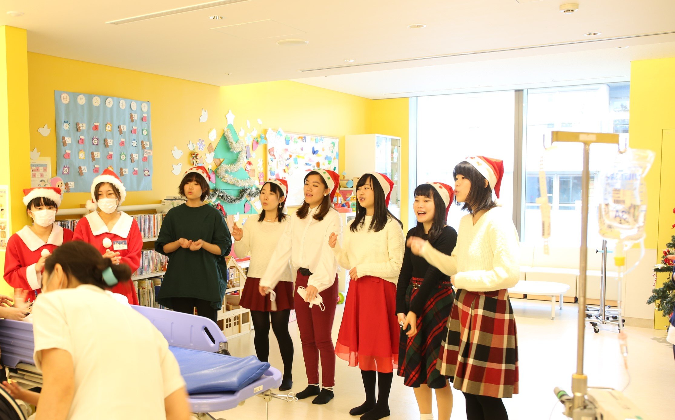 In addition to clubs centered on Faculty of Nursing and Medical Care students, our students actively participate in a variety of activities, including clubs at the SFC, Shinanomachi, and other campuses. Additionally, during the Christmas season, student volunteers organize the Santa Project, an event that brings a wonderful time of song and music to patients and their families at Keio University Hospital.