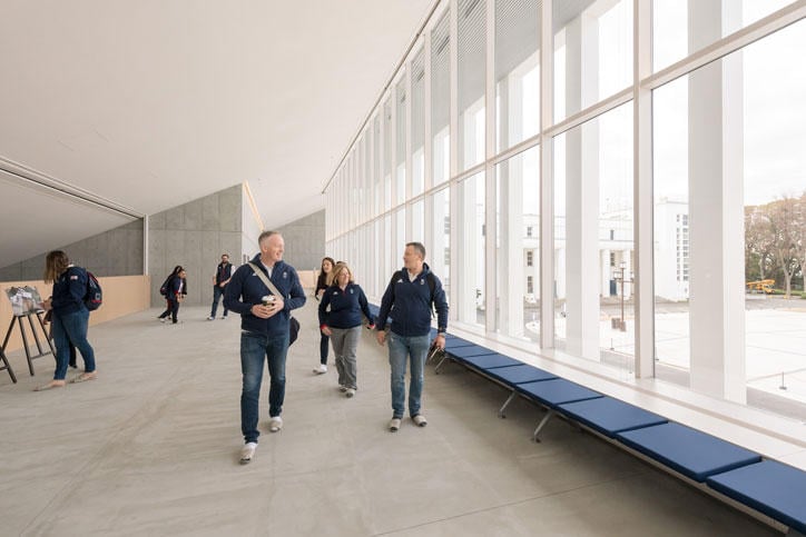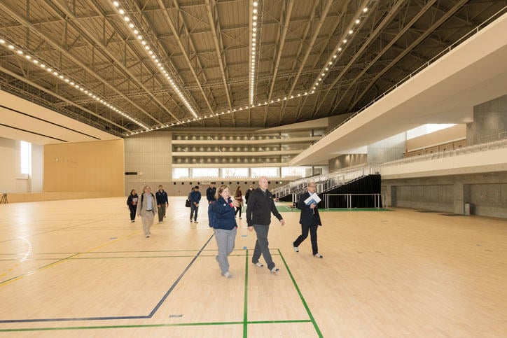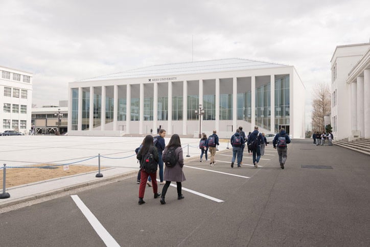 Due to the worldwide spread of COVID-19 (coronavirus disease), the visit was on a much smaller scale than originally planned. Nevertheless, the group that visited Hiyoshi Campus on this occasion comprised members of various teams including the swimming, taekwondo, and modern pentathlon teams, and they visited and carefully examined each facility they expect to use during the pre-Games preparation camp.