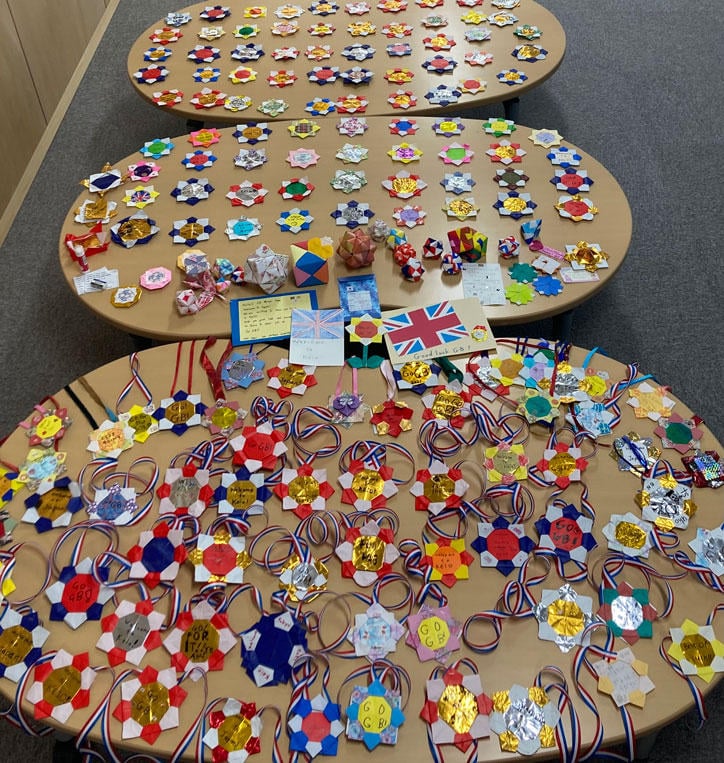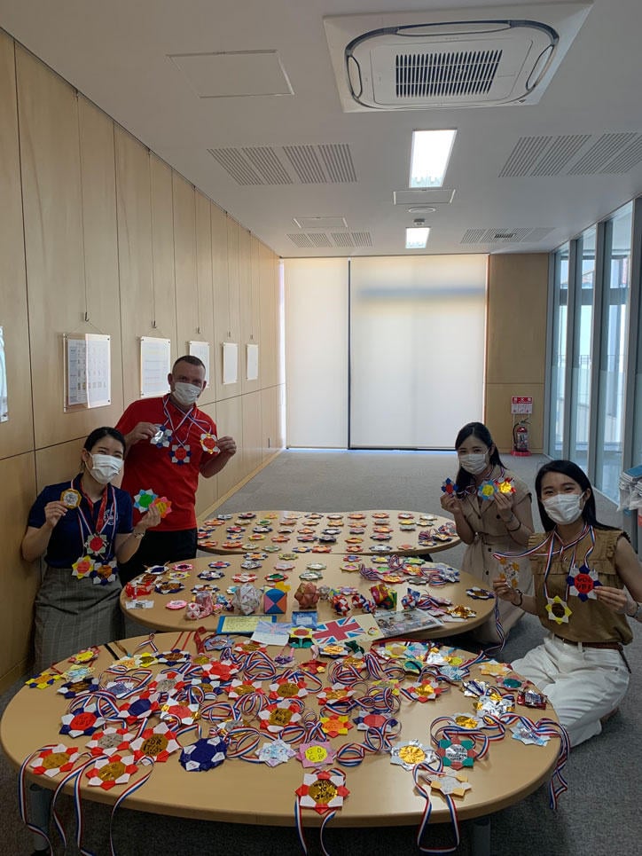 After training at the Hiyoshi Campus's pre-Games camps, Coombs competed in the Tokyo 2020 Paralympic Games in the Badminton division for athletes with short stature, securing a bronze medal for his performance. The event was inspired after Yokohama Elementary School students crafted origami medals for Team GB and ParalympicsGB athletes when they came to the Hiyoshi Campus. While COVID-19 resulted in the cancellation of many cultural exchanges between athletes and students, the origami medal project, spearheaded by the student-led volunteer group KEIO 2020 project in cooperation with Keio Yokohama Elementary School teachers, was an incredible success, collecting over 100 medals. Once Coombs received the origami medals, letters, and photos prepared by the children, he helped work to make this online cultural exchange event into a reality for the students who had reached out to him.