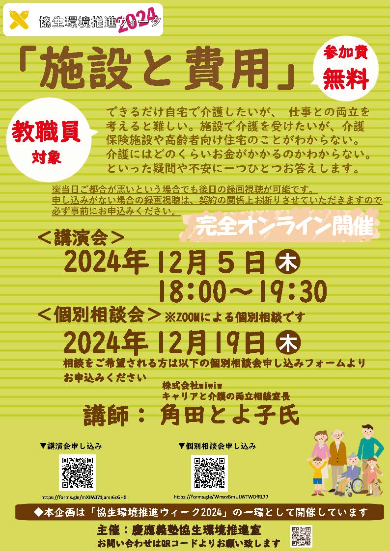 (3) 12/5 (Thu) "Nursing Care Support (KIND): Peace of Mind through Knowledge!! 'Facilities and Costs'"
