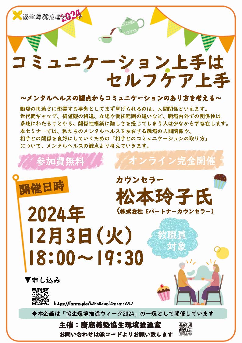 (2) 12/3 (Tue) "Support for Balancing Personal Struggles and Work (CARE): Good Communicators are Good at Self-Care"