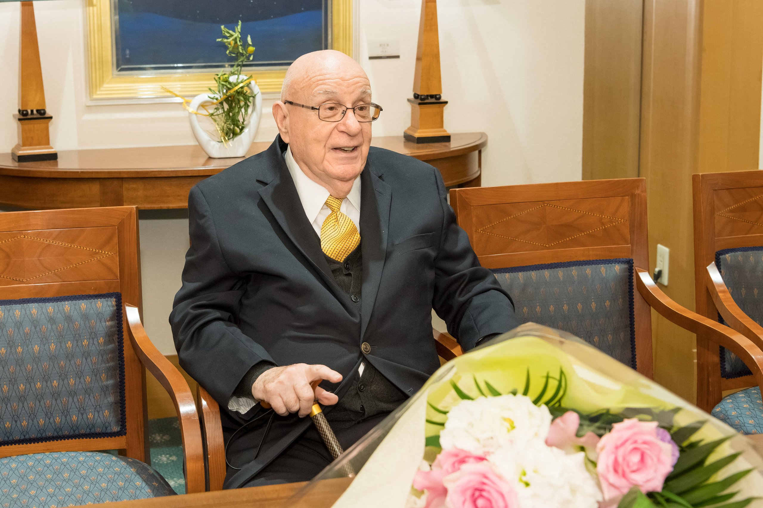 KGRI members and related persons were in attendance at the event and were joined by President Akira Haseyama and four Keio vice presidents, with the president offering his words of congratulation to Professor Farber while presenting him with a commemorative gift and bouquet.