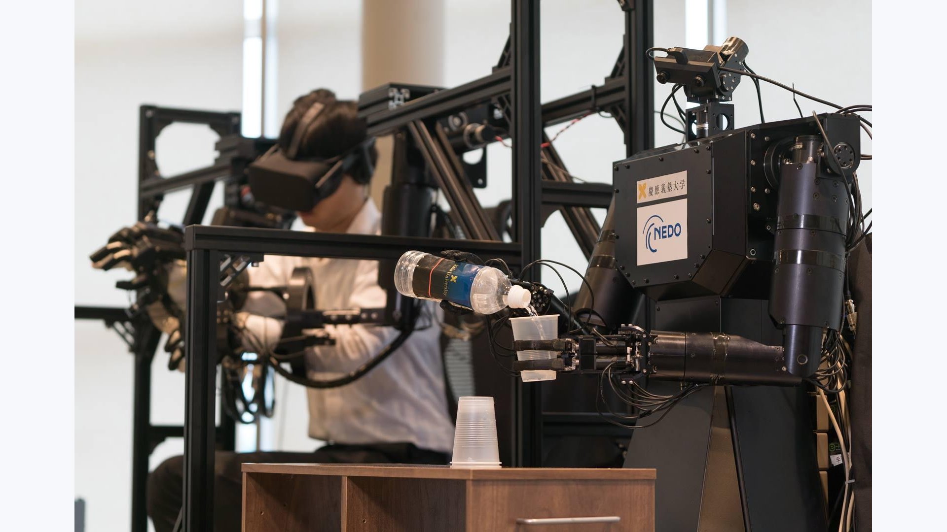This paper proposes the haptic transmission based on the equilibrium force control, and has succeeded in reducing the data traffic by about 66%