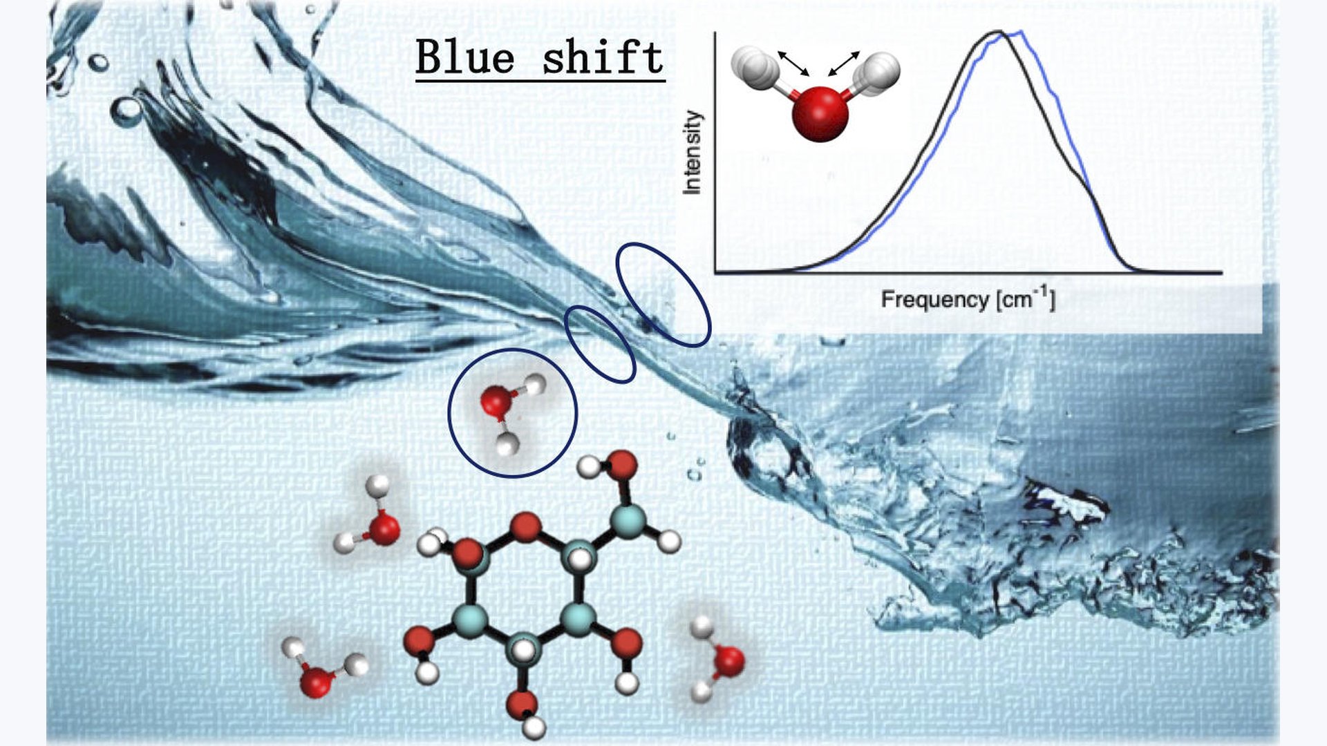 Origin of the blueshift of water molecules at interfaces of hydrophilic cyclic compounds