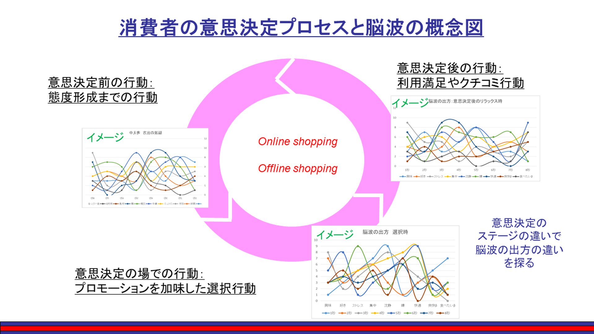 This research is to capture the movement of brain waves(EEG) at the very moment when people make decisions, and to find out which values of brain waves are high enough to make satisfactory decisions, using the most common decision-making process in daily life, i.e., the purchase of products, as experimental material. Decision making is a phenomenon that appears not only in marketing, but in all other situations, and we envision extending the research to other fields based on this study.