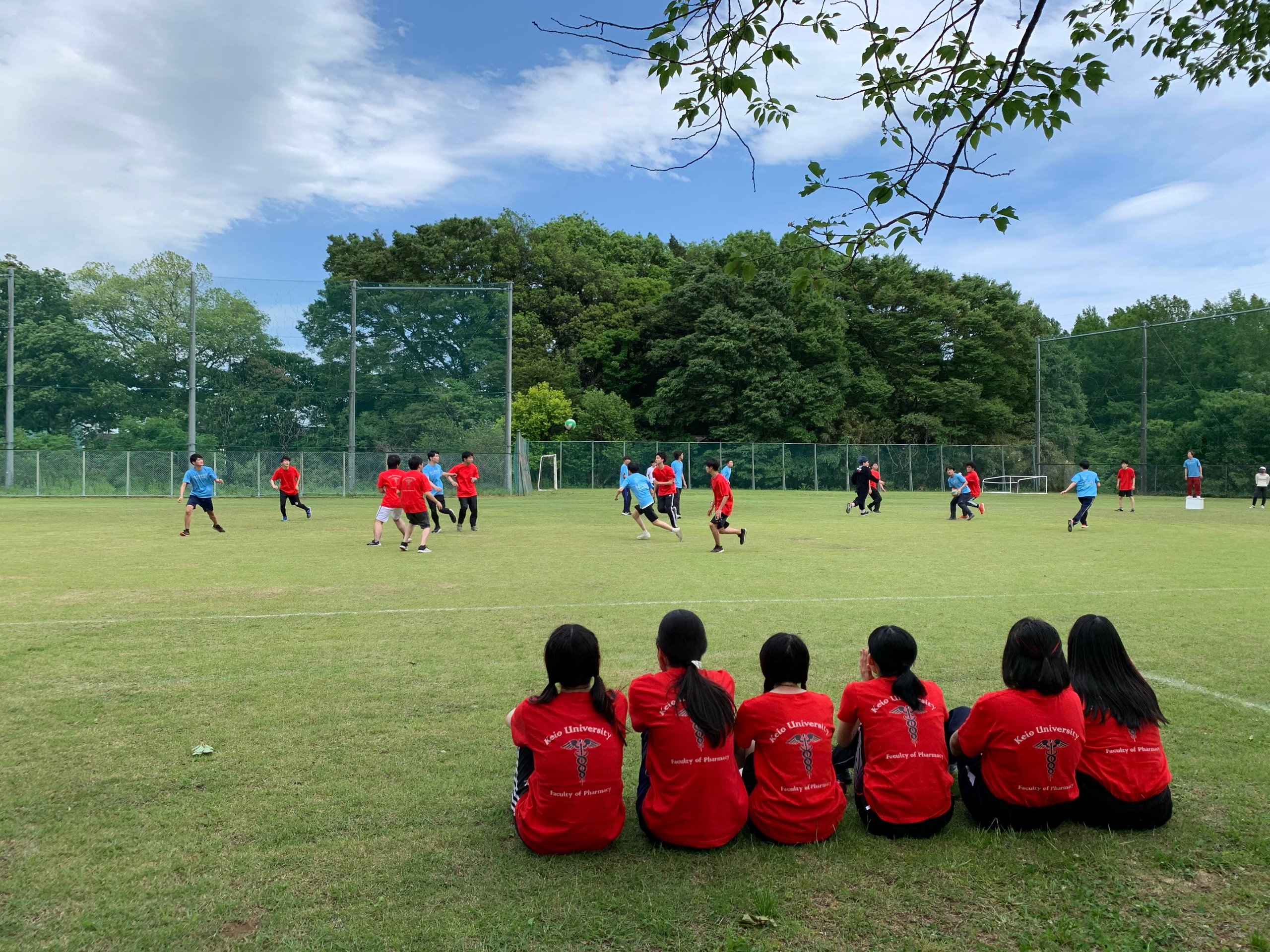 The Urawa Festival is planned and managed by the Shiba-Kyoyaku Festival Executive Committee with the aim of encouraging new students of the Faculty of Pharmacy to interact with each other across different classes. Approximately 160 first-year students participated in matching T-shirts for each class, competing for points and aiming for the championship in events such as a costume relay, team jump rope, and port ball.