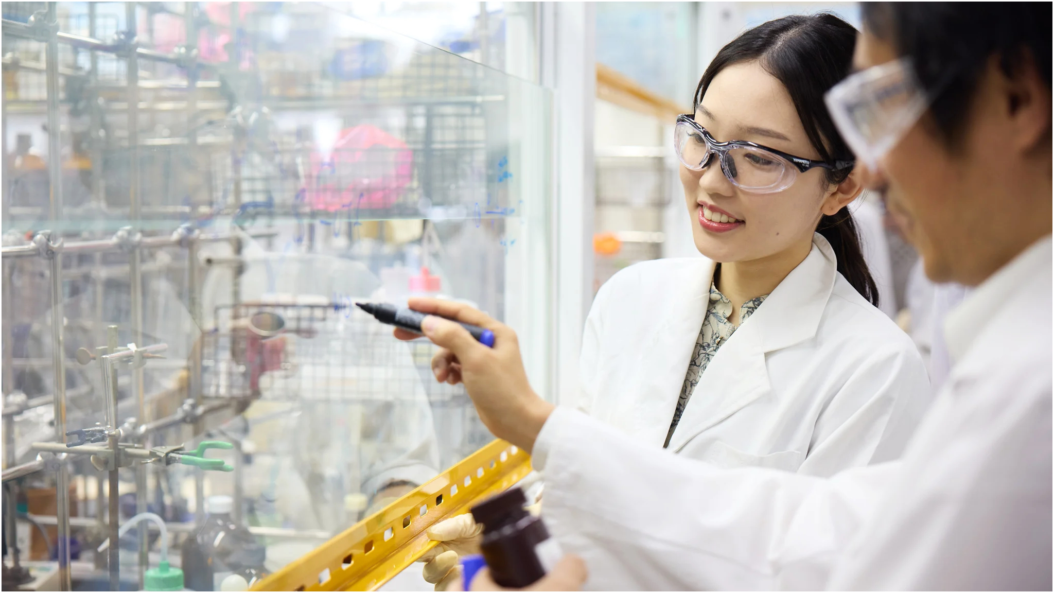 From the latter half of the third year, students are assigned to laboratories. Under the guidance of their academic advisors, they gain the foundational practical and problem-solving skills essential for scientists, preparing them for graduate school-level research projects.