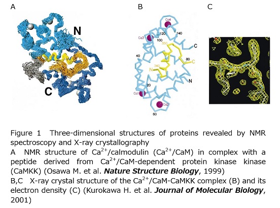 Our research objectives are: (1) to reveal structural mechanisms of proteins critical for life functions at atomic level, (2) to establish novel strategies for drug developments based on the mechanisms, and (3) to create compounds to regulate the life functions. Proteins playing important roles physiological processes are analyzed at an atomic resolution by nuclear magnetic resonance (NMR) spectroscopy and X-ray crystallography.