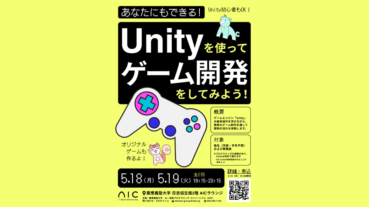 On Monday, May 18 and Tuesday, May 19, 2026, we will hold "You Can Do It Too! Let's Try Game Development Using Unity!"