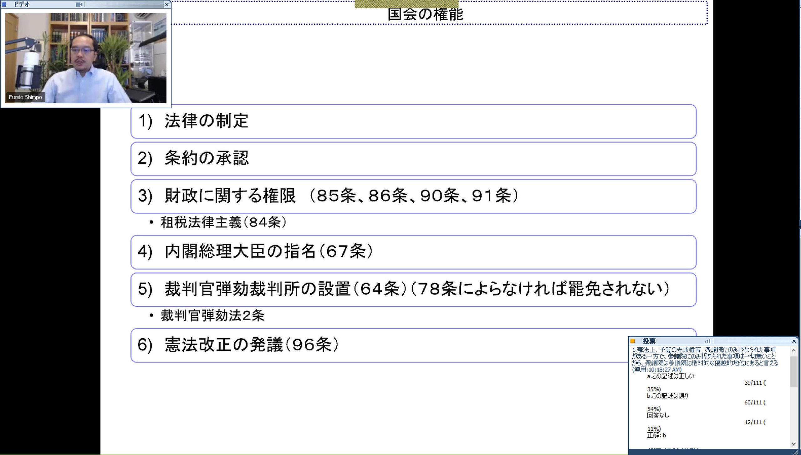 Believing that the ability to comfortably attend lectures is a prerequisite for online classes, I set up my environment for online lectures by referencing the setups of video streaming service providers to ensure stable audio, video, and network conditions. I encouraged students to use the chat and Q&A features to post comments and ask questions whenever they thought of them. I also made it possible for family members of students interested in constitutional issues to observe the online classes.
