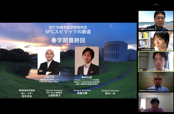 We included BGM and videos at the beginning, during breaks, and at the end of the class. During the lectures, SAs (Student Assistants) took the lead in continuously answering questions in the chat box and Q&A in real-time. For the final class, we introduced Comment Screen. Although we could only do it a few times, we set up a Spatial Chat space after class for students to make friends. Furthermore, in addition to the main Guest Professors (Part-time) who were in charge of the lectures, we had other Guest Professors (Part-time) log in whenever they had a bit of free time, such as between company meetings. This led to a situation in the final class where "six Guest Professors (Part-time) gathered in one place," which I believe was a special experience only possible online.
