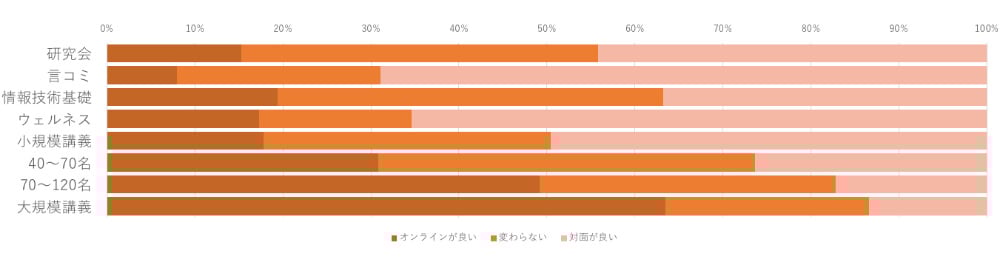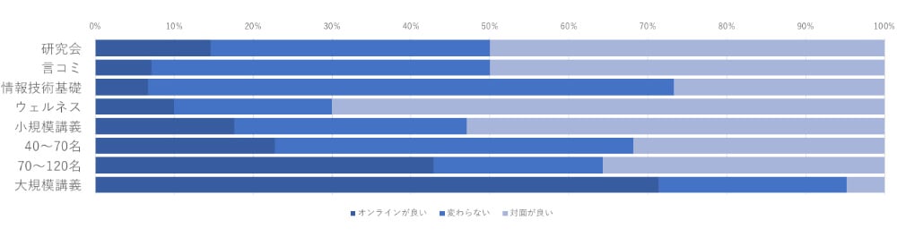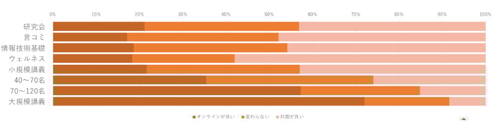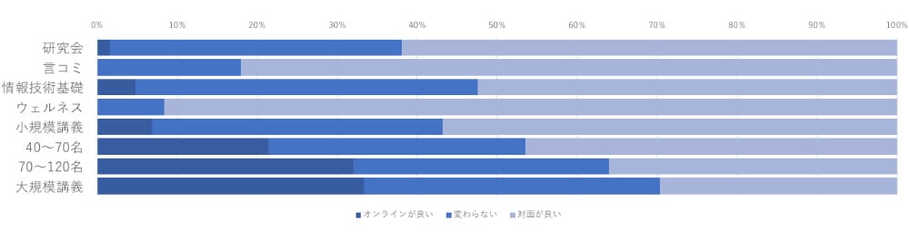 Overall, opinions that online classes are fine have increased, except for small-scale lectures.