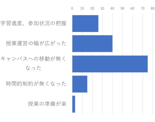 In classes with active chats, students can participate enjoyably without getting bored and can concentrate. (No negative comments)