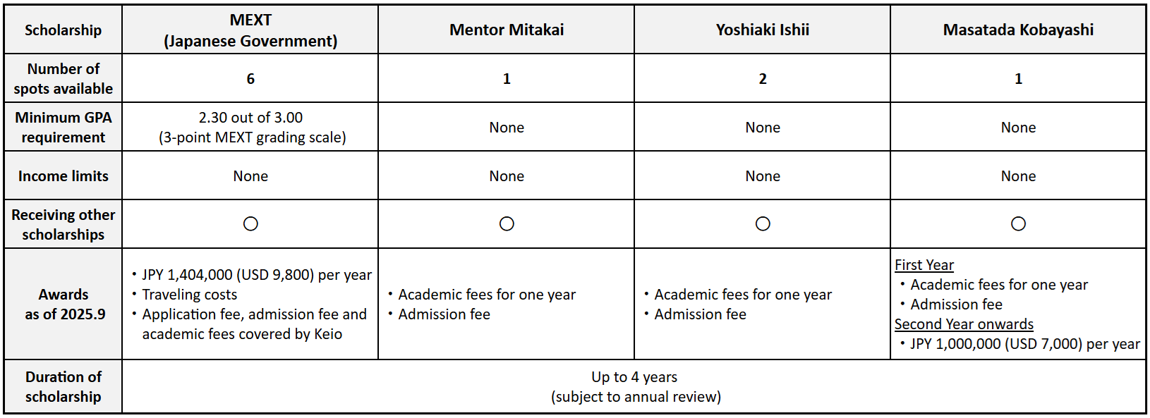 Program. Applications for these scholarships will not be accepted after entrance into Keio University.