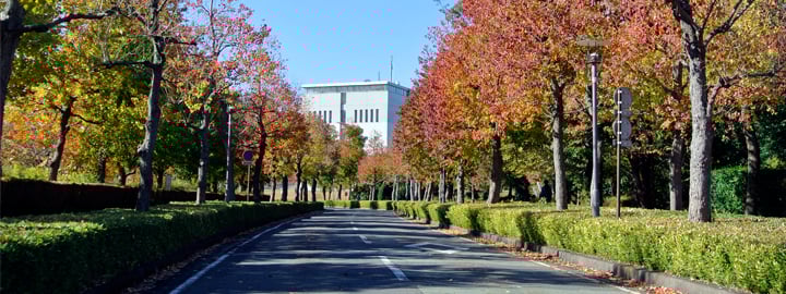 Conduct research or group work with high-speed Wi-Fi while lying down by Gulliver Pond (Kamoike). Research buildings with deep green forests as borrowed scenery. Surrounded by approximately 80 acres of peaceful nature, the environment is equipped to support research and communication.