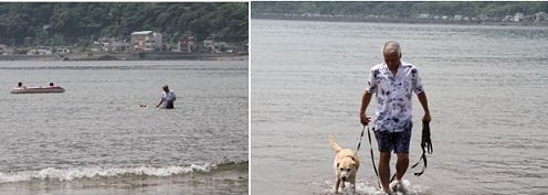 Another regular event in August is the campus-wide holiday. The administrative offices and Media Center close, making it a literal holiday week. It coincides with the Obon holiday season in Japan, but I think many people at the university are not very conscious of it, as many continue their research. I myself try to plan short trips with my family, but it's often difficult, and the reality is that I can't take long vacations. Still, I have gone on trips in the past, such as climbing Mt. Fuji ( https://www.sfc.keio.ac.jp/deans_diary/20090908.html ), but one of the hidden challenges is our family pet, Cookie. In our family, it's customary to take Cookie with us, so we look for pet-friendly accommodations. Even though he's a dog, he's a member of the family, and if we were to leave him at a pet hotel, he gets into a small panic out of joy at being reunited when we pick him up. It seems that among our dog-loving friends, some small dogs get sick from the stress. For this reason, for the past few years, our family trips have involved booking dog-friendly inns and traveling together with Cookie. This year, we stayed at an inn in Izu, and I acted as Cookie's swimming coach in the sea. He seemed to really enjoy being in the water and swam for a long time. When he was one or two years old, he was afraid of the sea, but now that he has learned to swim, he leisurely dog-paddles while floating.
