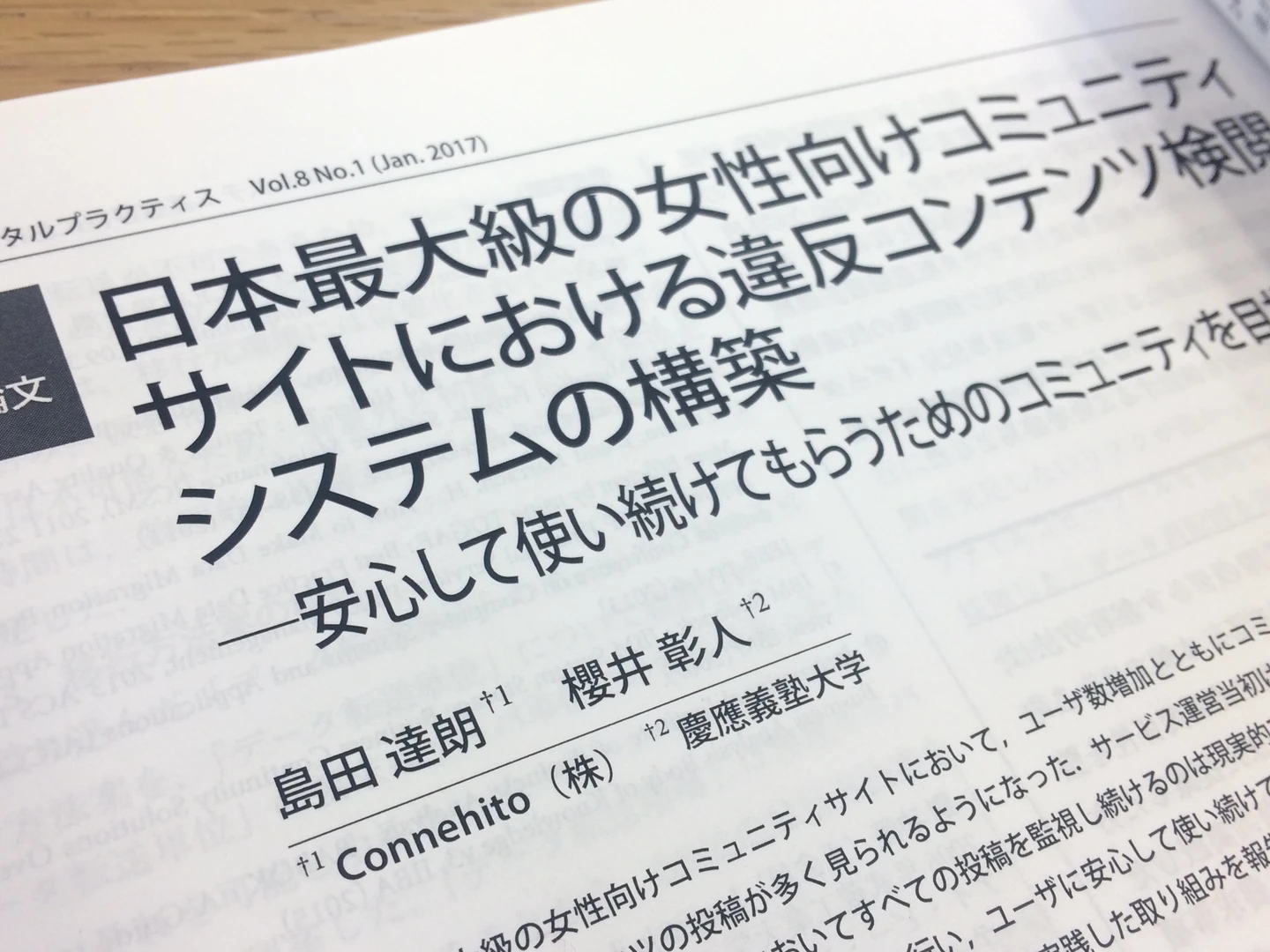 Although it was research activity while working, I feel that the perspective unique to a startup, where I oversaw the technology field and could move flexibly, and the perspective as a researcher were able to have a positive mutual influence. Through such activities, I was able to contribute to a journal called Digital Practice and present my results at international conferences.