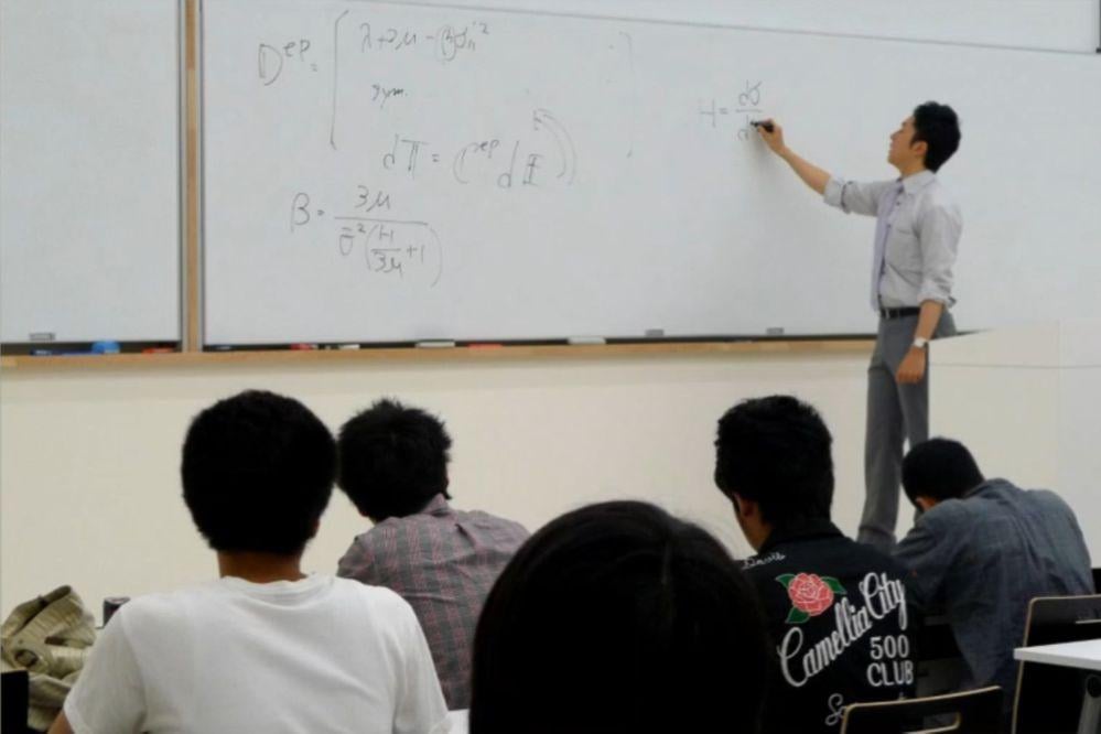 I knocked on the door of the laboratory of Professor Kazuyuki Shizawa (then an associate professor), which focused on solid mechanics, a field that was not very familiar at the time. My reason for choosing it was similar to my motivation for joining the department: I was good at materials mechanics. Another appeal was that it was one of the rare labs in the Department of Mechanical Engineering that didn't conduct experiments. It wasn't that I disliked experiments, but I felt that the approach of tackling unsolved problems using theory and computers was a good fit for me back then. The research topic I was assigned as a fourth-year undergraduate was "Crystal Plasticity Model Using a Differential Geometric Representation of Dislocation Fields and Its Large Deformation FEM Analysis." I didn't understand it at all at first, but 15 years later, I am still conducting research in the same field.