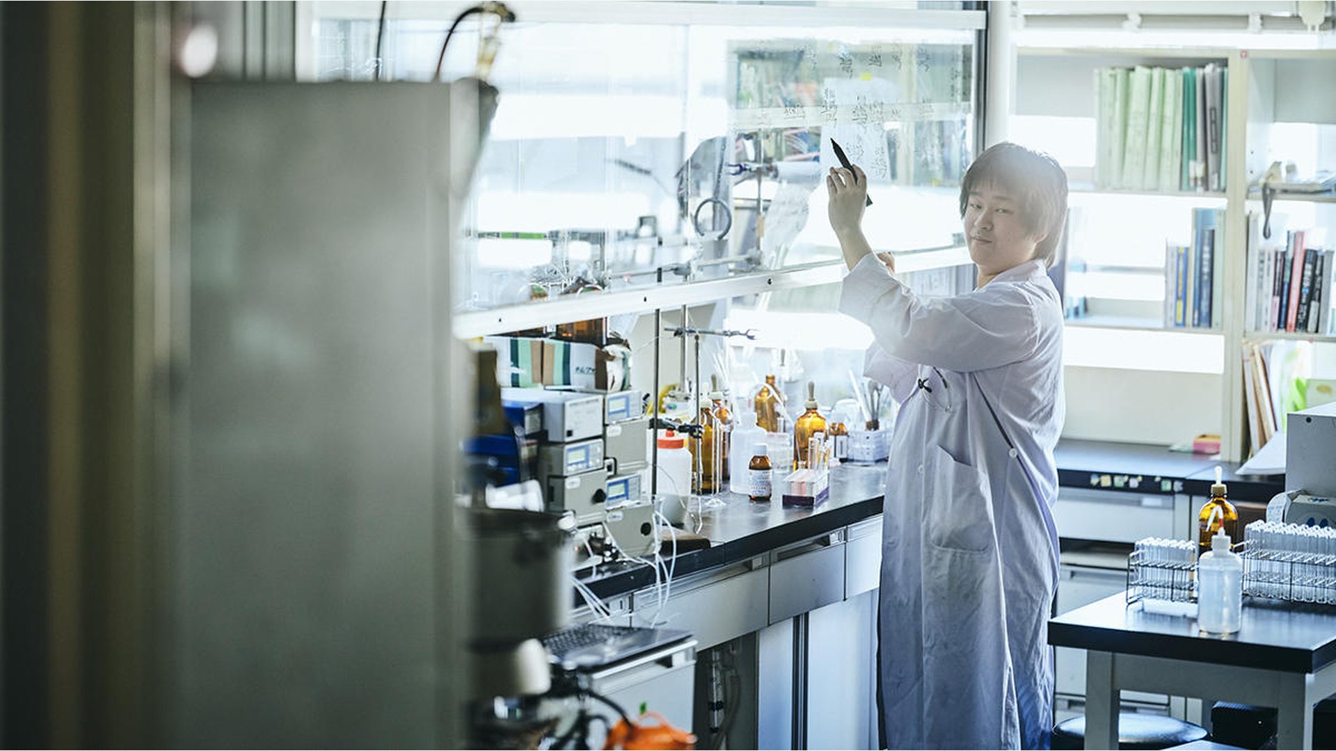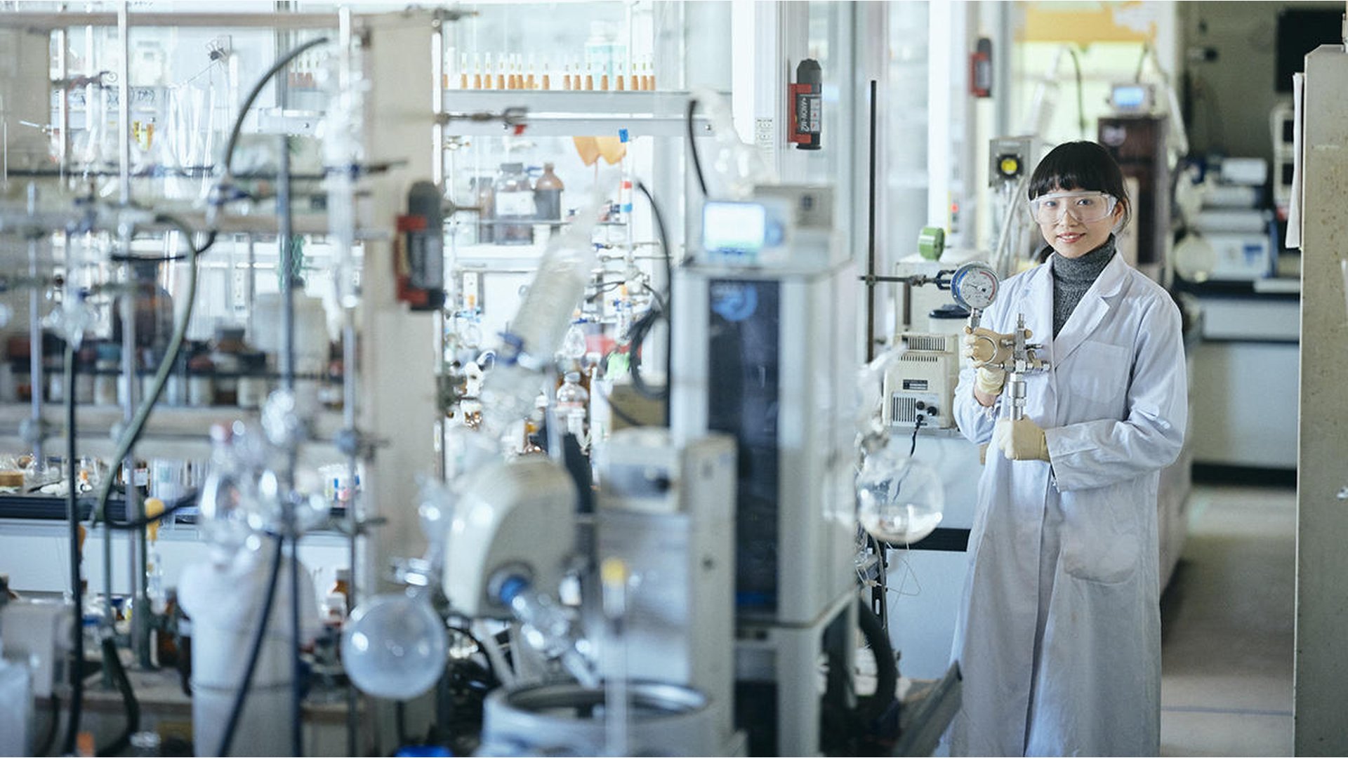 Diligently pursuing research to contribute to the field of synthetic chemistry. With the perseverance forged in club activities, she approaches results step by step.