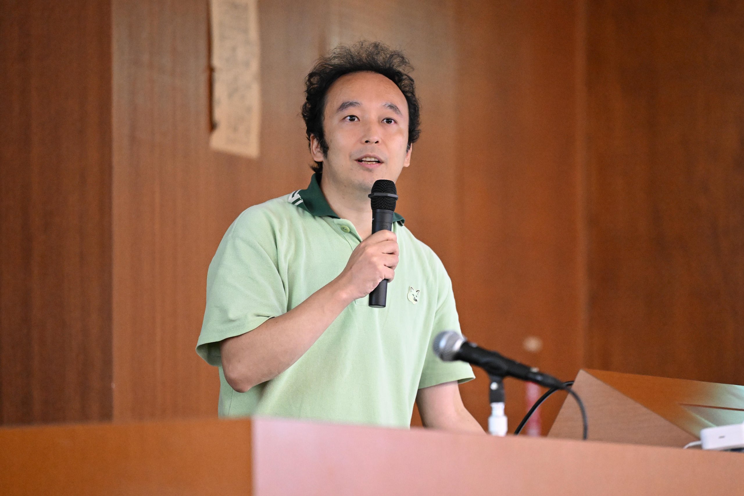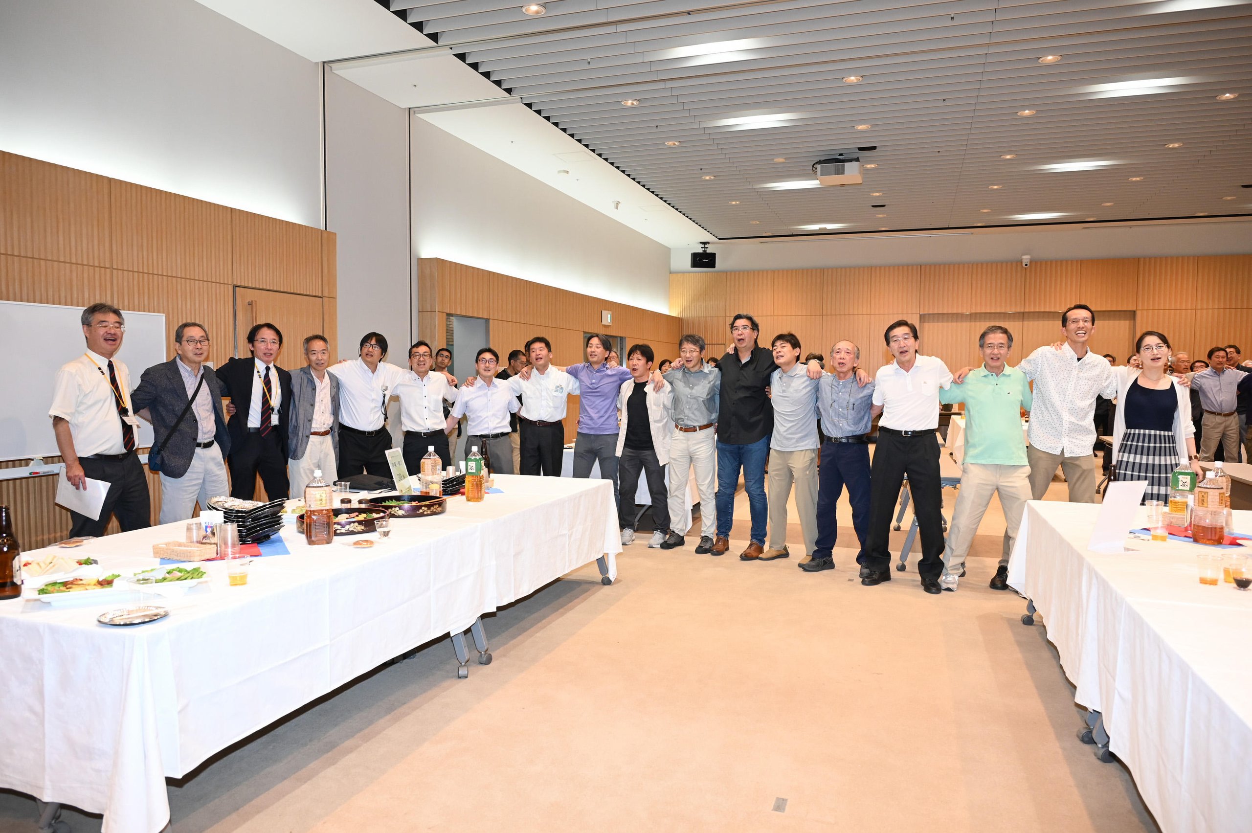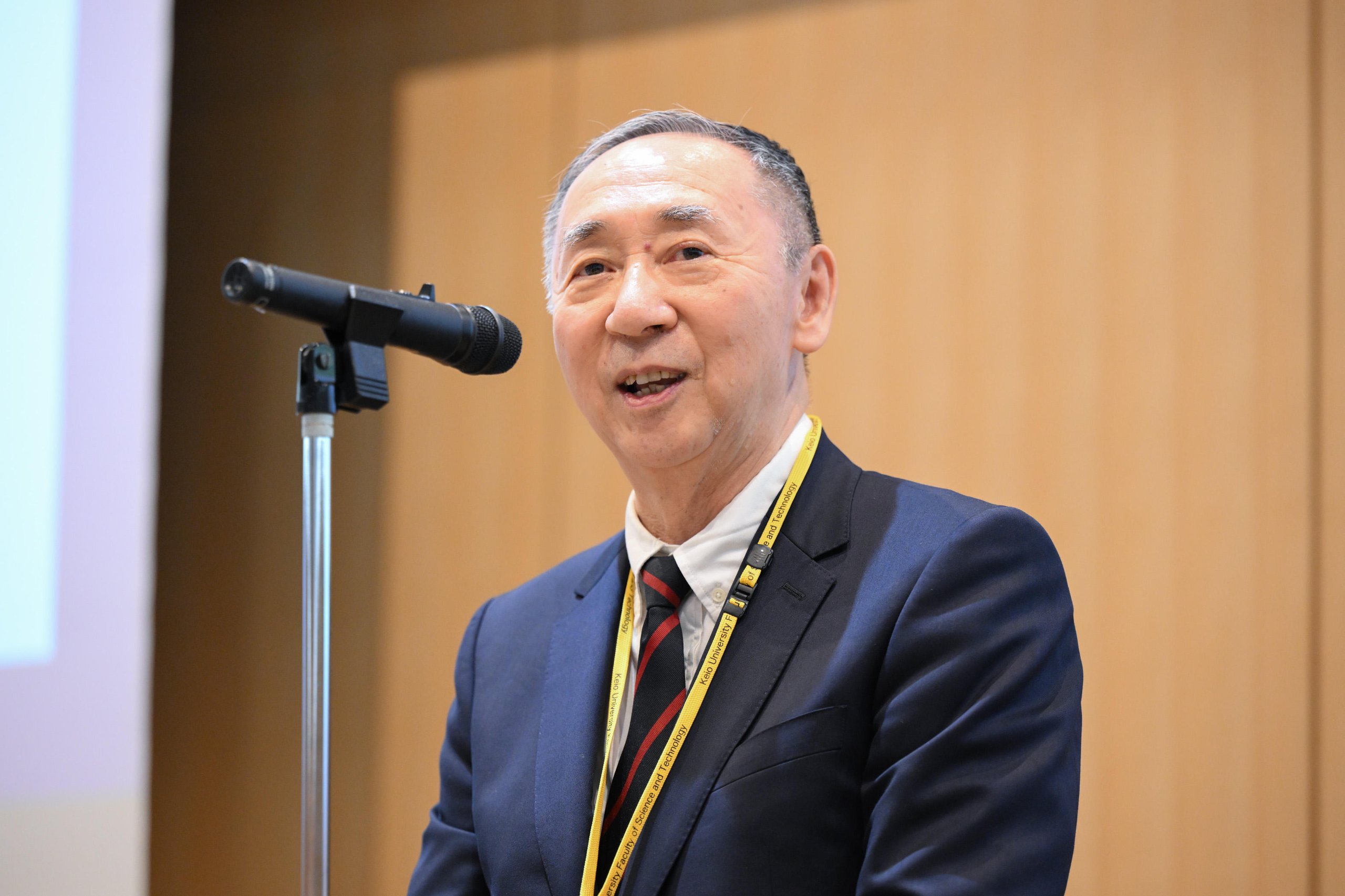 On the day of the event, approximately 170 alumni and their families gathered at the Yagami Campus. Following a welcome address by Dean Toshiyuki Murakami, Dr. Hirotaka Osawa of the Department of Industrial and Systems Engineering, Faculty of Science and Technology, gave a lecture as an alumnus, introducing his research. Afterward, Tomoharu Oka, Chair of the Public Relations Committee, and Dean Toshiyuki Murakami explained the current status and future direction of the Faculty of Science and Technology and the Graduate School of Science and Technology. The event then moved to a different venue for a reception, which concluded on a high note with all participants singing "Wakaki-chi" together.