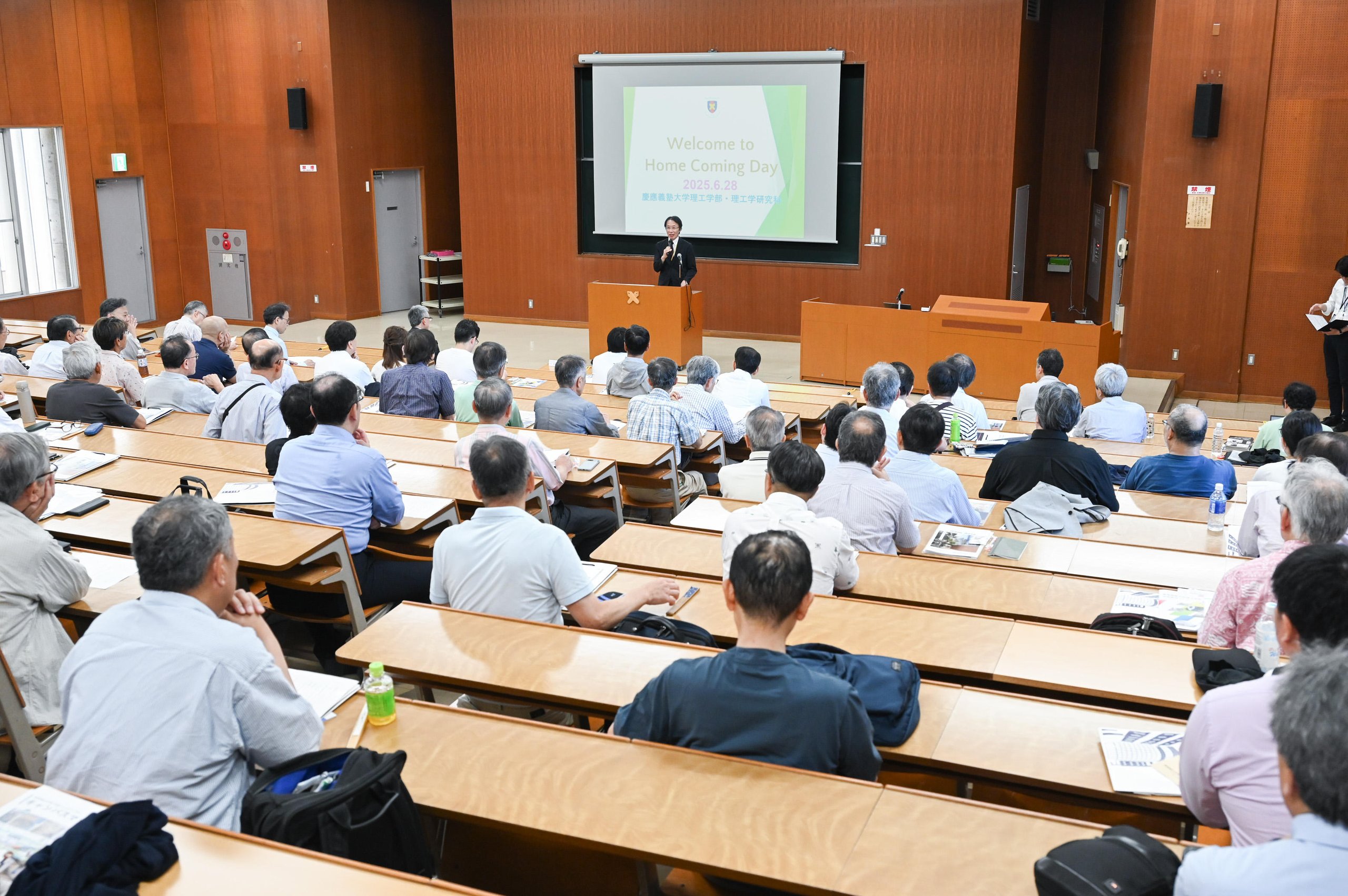 On Saturday, June 28, 2025, Homecoming Day was held, inviting alumni celebrating their 10th, 20th, 30th, 40th, and 50th anniversaries of graduation or completion of their studies from the Faculty of Engineering, Graduate School of Engineering, Faculty of Science and Technology, and Graduate School of Science and Technology. The event provided an update on the recent activities of the Faculty of Science and Technology and the Graduate School of Science and Technology, and participants enjoyed a reception and a tour of the educational and research facilities on the Yagami Campus.