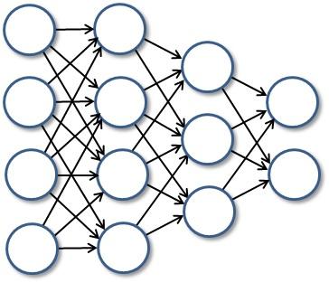 A neural network is what is called a "nerve circuit network" in Japanese. It is a network formed by the connection of many nerve cells (neurons), which you may have learned about in high school biology. A simple representation is shown in Figure 3. The circles in the figure represent neurons, and it is said that there are tens of billions of them in the human cerebrum. This may seem like a huge number, but let's compare it with the latest processors. Processors equipped with several billion or more transistors are already on the market today. Of course, neurons and transistors differ in function. However, in terms of being basic elements for information processing, we are in an era where a few dozen of the latest processors can surpass the total number of neurons in the human cerebrum. In other words, the artificial brain, which may feel like a fantasy, has actually entered an era where it is fully achievable from a hardware perspective.