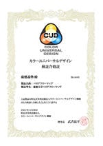 特定非営利活動法人カラーユニバーサルデザイン機構(CUDO)が、色覚の個人差を問わず、利用する人の視認性に配慮した製品を認定する「カラーユニバーサルデザイン(CUD)認証」に合格し、CUD認証を取得しました(2021年11月30日)。