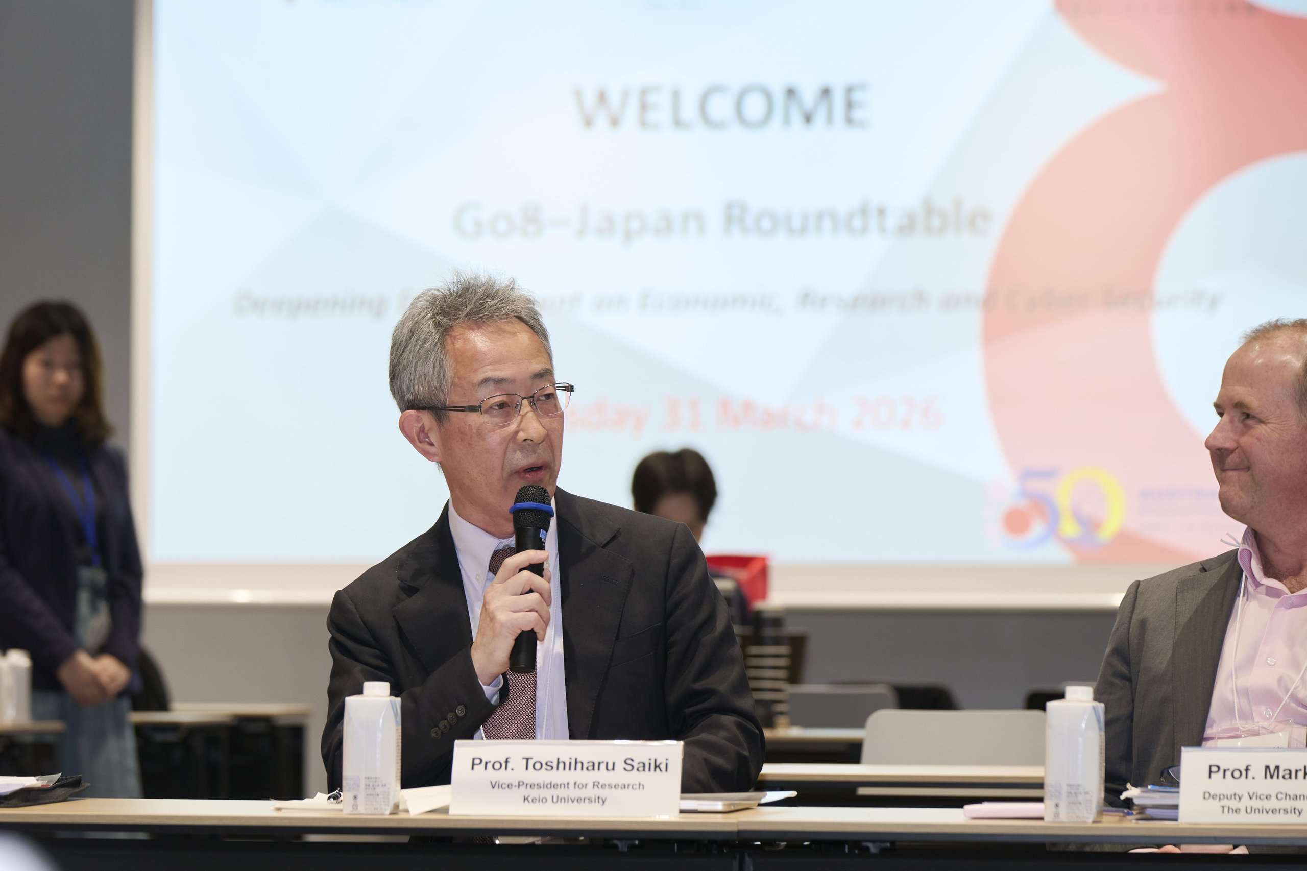 「Go8と日本の研究対話」の一環で、過去2年間で3回目の開催となった本ラウンドテーブルでは、日豪両国間の経済安全保障、研究インテグリティ、およびサイバーセキュリティ分野における連携をいかに深化できるか、などの議題が協議されました。本学からは伊藤公平塾長をはじめ、土屋大洋常任理事、斎木敏治常任理事が出席しました。Go8側からは議長のDeborah Terry教授(クイーンズランド大学長)らが出席し、本年、日豪友好協力基本条約締結50周年を迎えた両国のパートナーシップや研究大学が果たすべき役割について、活発な意見交換が行われました。