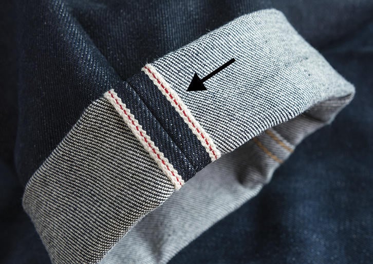 それからもう一つ、ジーンズには赤耳というものがあります(写真)。織物の端っこが、赤い「色糸」で区別してあって、それがほつれ止めになっています。