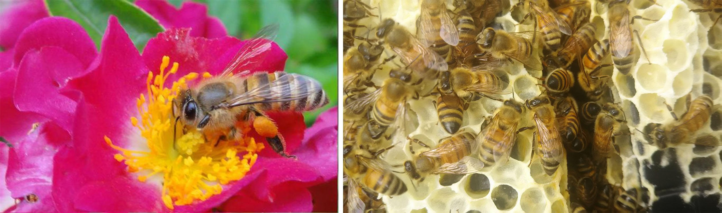 どちらのミツバチも大体同じ花にはいきますけど、頻度が違うのと、ニホンミツバチは目立たない木々の花をより好む傾向があります。それと、飛ぶ範囲が違いますね。セイヨウミツバチは大体半径2、3キロは飛びますが、ニホンミツバチはそれより狭い範囲です。採れるハチミツの量も少なく貴重です。