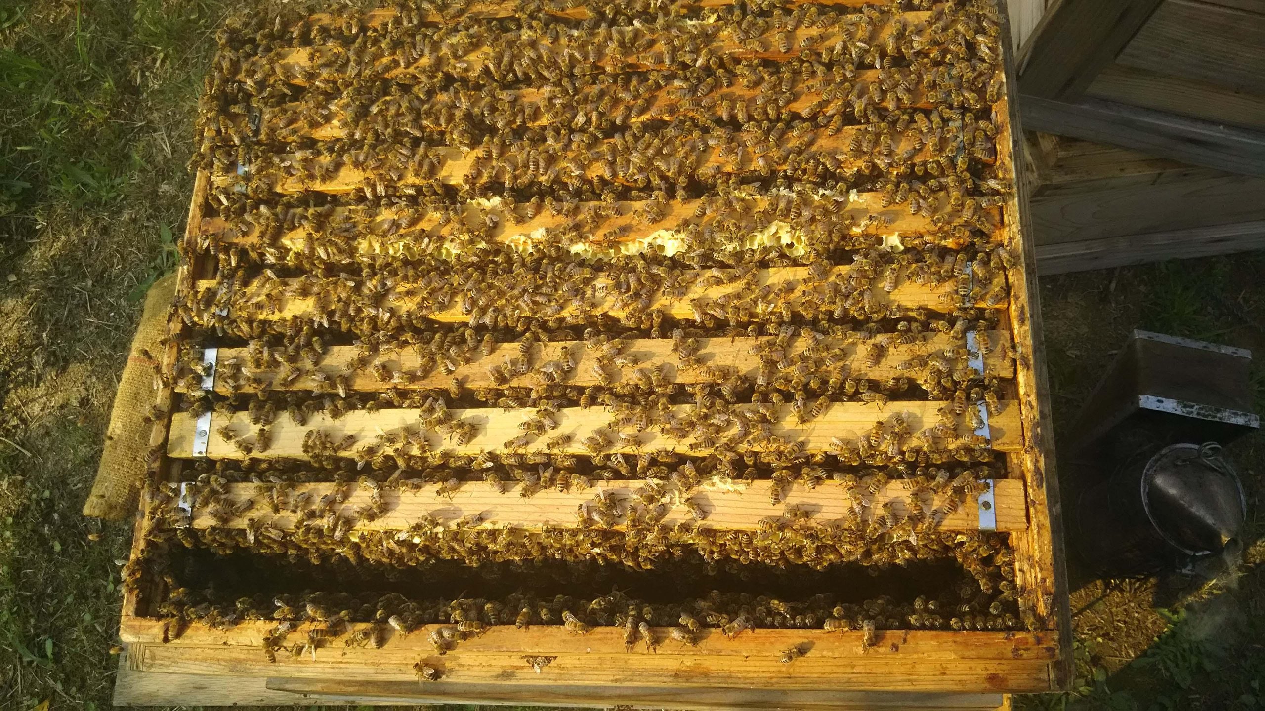 ニホンミツバチだともっと丁寧に扱わないといけないんですよ。そうしないとすぐ逃げ出していなくなってしまいます。