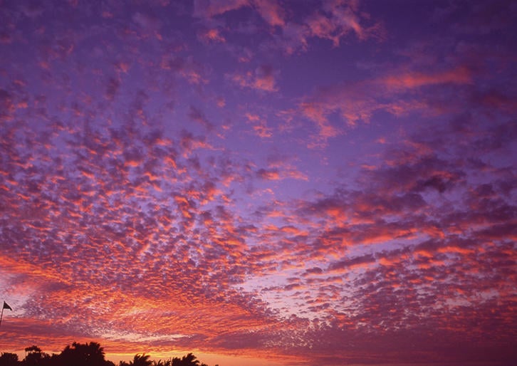 ハイライトは夕方ですね。刻一刻と空が変わっていって、その時うまい具合に風でも吹いてくれていると、いろいろな形に雲が流れていって、その都度光の当たり方が変わりますから。結局、組み合わせですよね。うろこ雲にきれいに夕日が映っているとか。