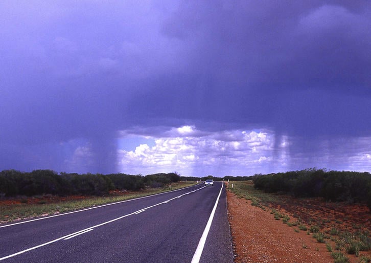 それは見ていませんが、西オーストラリアの真っ平らなところでは、見たことのない雲がよく出ます。道路の上だけ雨が降っていなくて額縁みたいになっていたり。